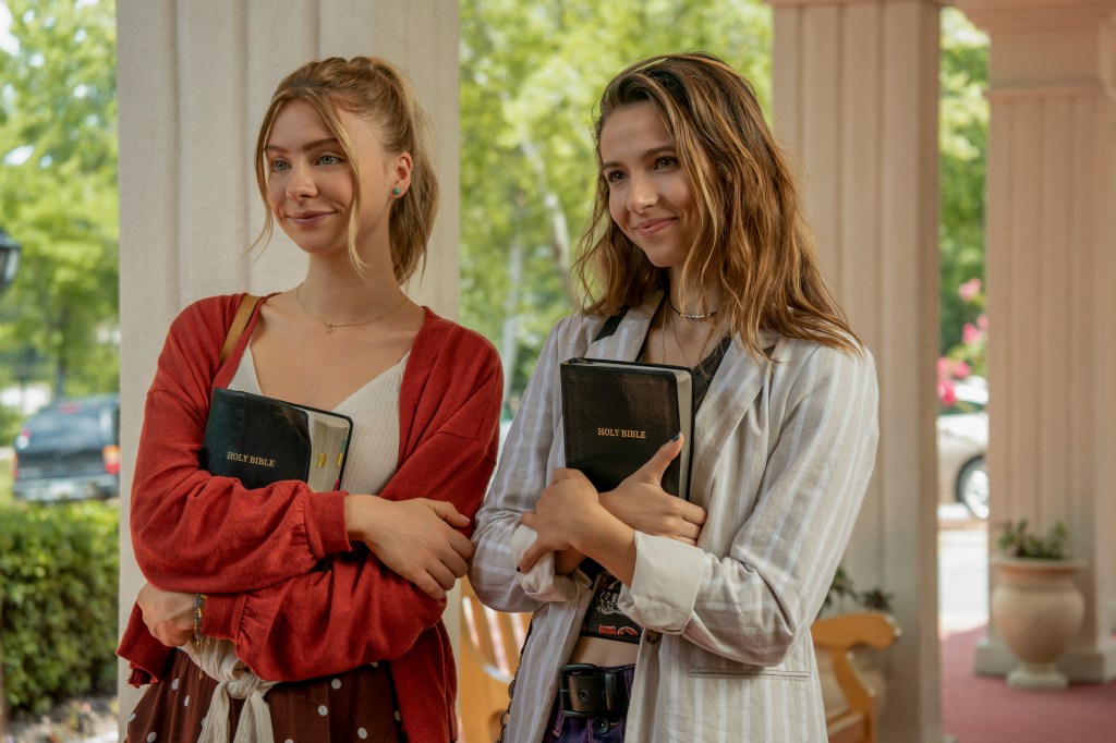 While not always perfectly balanced, Teenage Bounty Hunters benefit from it’s two charismatic leads. The chemistry between Maddie Phillips, who plays “the good twin” Sterling, and Anjelica Bette Fellini, who plays “the bad twin” Blair, never falters and is the driving force of the show. But what separates Teenage Bounty Hunters is the fact that the show plays against type. Yes, you could qualify Sterling and Blair as the good and bad twin but even then, that is doing injustice to the show and the writing. The writing is perfect when it comes to creating characters that just fit into one box. Never does the show try to make everyone fit in just one thing, yes they are often tropes that are used to put a character into one box, but then the show finds a way to turn it on its head in an instant. The show is intelligent in the handling of the characters and finds a way for you to care about everyone even when a character starts as the typical villain. You might start by hating a character but the writers of the show are capable of humanizing everyone and make them human by the end of the show instead of stereotype. It’s refreshing in a teenage show since a lot of the time shows just try to have archetypes of characters and are satisfied with just that.