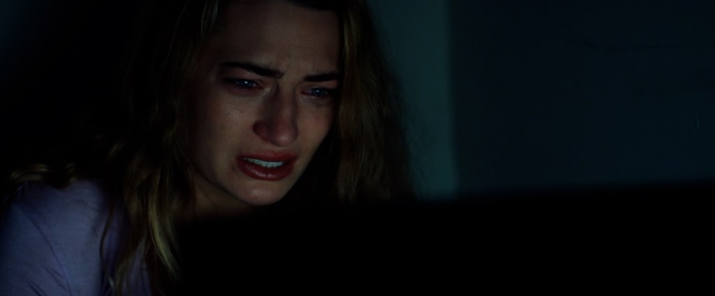 Shook has an interesting enough concept and storyline that makes it an enjoyable watch. Quite simply it is a fun movie that evokes many classic horror tropes: phone calls from a stranger, an unknown person slinking around the house, and Saw inspired games. Watching Mia weave through the decision making process to save her friends made for some high anxiety scenes that were equally as entertaining as they are horrible. Tutor has a captivating presence and she is able to level the balance between the comedic and serious tones. Unfortunately, scenes occupied by side characters often felt overdramatized by antics, taking away large portions of tension building. A majority of the film is spent on a laptop or cellphone screen, using projector-like images on the wall or floor to imitate people in the room with Mia. This just served to add to the list of unnecessary additions to the film. As time went on, it began to feel like a mechanism to make scenes feel full. There are countless horror films such as Hush (2016) and Unfriended (2014) that utilize limited people or a screen based cast yet never feel empty. The looming threat of someone watching is enough to build eeriness.