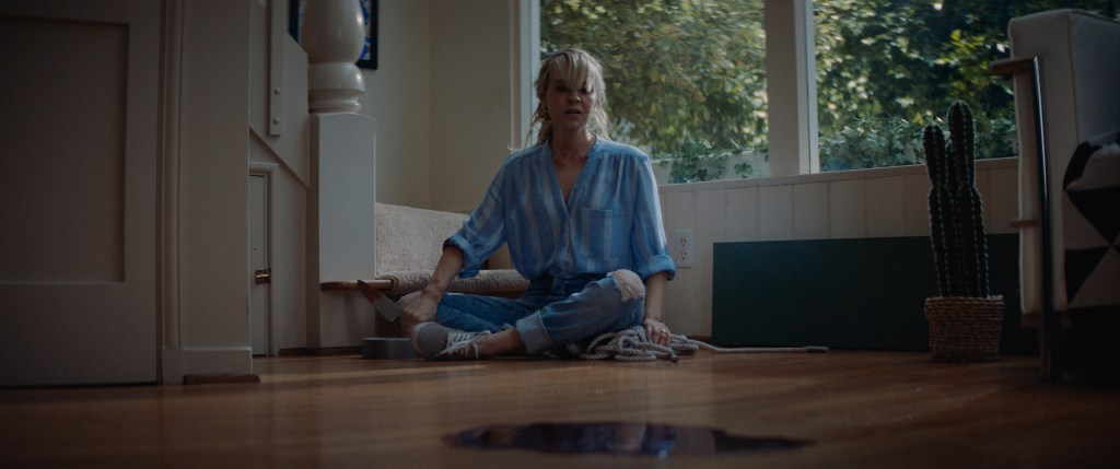 Lucky utilizes repetition in various ways as a means of commentary. Several objects or phrases are seen/heard throughout the entirety of the film. One of the first uses of symbolism is shown while May is washing the dishes. She examines a plate that has a crack in it. Later on, May and Ted are eating ice cream on their couch and she notices a piece of broken glass on the coffee table. She picks it up and says “that could be dangerous.” The imagery of broken glass is repeated several times: May discovers a piece of broken glass in her finger, she steps on broken glass in the living room, there’s a broken window, she uses a piece of glass to stab the intruder. Even the cop notices the shard on the coffee table and repeats the same line “this could be dangerous”. Ultimately, the broken glass is a symbol of the lack of protection women have in society; any perceived protection is feeble and fragile. May uses many tactics to create a sense of protection for herself. She goes to the hardware store to buy rope and tape. She locks her door every night. She buys a security system. Yet despite her efforts, she is still attacked. Many women believe the answer is self-reliance by building their abilities to protect themselves in dangerous situations. There is value in these methods because building capacity for self-protection does save lives. But the myth that women should take responsibility for their own safety as a meaningful solution to violence is not only a harmful notion but does not address the concern on a systemic level. Individual women trying to fight back does not stop the problem because many of the systems designed to “help” are useless i.e professionals such as the police, paramedics, and social workers.